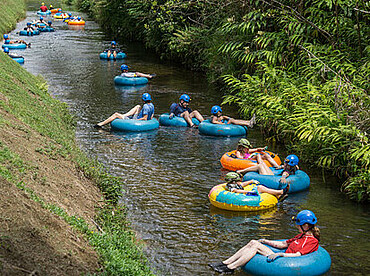 Etwas ganz besonderes wird Ihnen beim Backcountry Tubing geboten. Kauai Backcountry Adventures hat exklusiven Zugang zum historischen Bewässerungssystem der ehemaligen Lihue-Plantage. Dieses Graben- und Tunnelsystem, dass einst große Zuckerkulturen bewässert hatte, war ungenutzt, seit die Zuckerherstellung im Jahr 2000 ausgesetzt wurde. Im Januar 2003 eröffnete Kauai Backcountry einen Bereich für exklusive Tubing-Touren. Dieses Wassersystem verläuft durch einige der schönsten und ab gelegensten Gegenden der Insel. Es bietet eine spektakuläre Aussicht auf die Berge und den Waialeale-Krater.