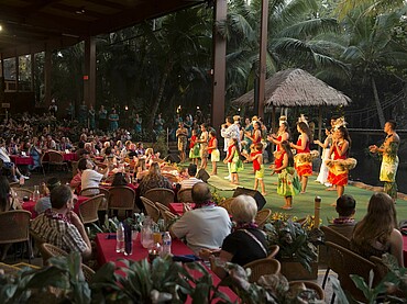 Zur Eröffnung werden Sie mit einem Blumen-Lei zum Luau begrüßt. Anschließend sind Sie zum große Ali‘i Luau Dinner Buffett und der Show geladen, sie erhalten „Luau Level“ Sitzplätze bei der eindrucksvollen Show „Ha, Breath of Live“.