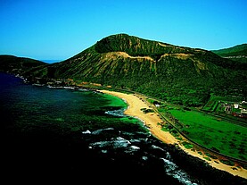 Die Insel Oahu ist die bevölkerungsreichste Hawaiis. Mit „Magnum Helicopters“ haben Sie die Möglichkeit die ganze einzigartige Insel mit ihren vielseitigen Sehenswürdigkeiten von oben zu überblicken. Ein besonderes Erlebnis um Ihre Reise Beispielsweise zu beginnen oder abzurunden. Die Tour bietet Ihnen fünfzig Minuten paradiesische Aussicht in einem Helikopter mit offenen Türen. Dadurch werden Sie nicht nur ein intensiveres Erlebnis und bessere Sicht auf die Insel haben, sondern Sie können auch einzigartige Fotos schießen. Ihre Tour beginnt über den Hafen vorbei am Aloha Tower, dem Ala Moana Beach Park und entlang des berühmten Waikiki Beach, wo Sie die Surfer und Schwimmer von oben sehen, manchmal auch Delphine. Weiter geht es am Wahrzeichen Honolulus, dem Diamond Head vorbei, über den Villenvorort Kahala und die wunderschöne Hanauma Bay. Sie fliegen an der Küste und den herrlichen Bergen entlang über das ehemalige Magnum Anwesen und das traumhafte Kaaawa Tal, bei der Kualoa Ranch („Jurassic Valley“). Ein Highlight ist sicher der nur aus der Luft zu überblickende „Sacred Fall“ Wasserfall. Über die North Shore, wo sich im Winter die Riesenwellen brechen fliegt der Helicopter ins Landesinnere. Dort liegen die Dole Plantation mit ihrem Ananas-Labyrinth und die „Geburtssteine“ Hawaiianischer Könige. Eine Schleife über das historische Pearl Harbor mit dem beeindruckenden Arizona Memorial rundet den Flug ab.