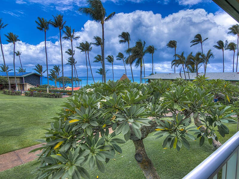 Die Apartmentanlage ist umgeben von einem tropischen Garten voller Palmen und liegt malerisch am wunderschönen Sandstrand der Napili Bucht.