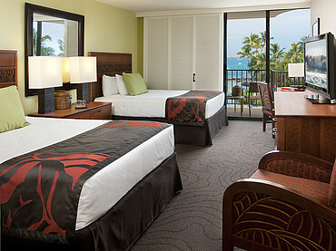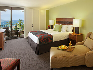 Die Zimmer sollen die Leitmotive von Big Island widerspiegeln: Lava, die einheimische Pflanzenwelt und komplexe Elemente des hawaiianischen Tattoos, welche in Hell- und Dunkelkontrasten besonders zum Ausdruck kommen. Die Hotelzimmer beinhalten einen Flachbildfernseher, kostenfreies WiFi und eine Kaffeemaschine mit hauseigenem Kona-Kaffee. Außerdem gibt es fünf One Bedroom Suiten, welche zusätzlich ausgestattet sind mit zwei Balkonen mit Meerblick, zwei separaten Bädern, zwei Schlafmöglichkeiten, einem Kühlschrank und einem Safe.