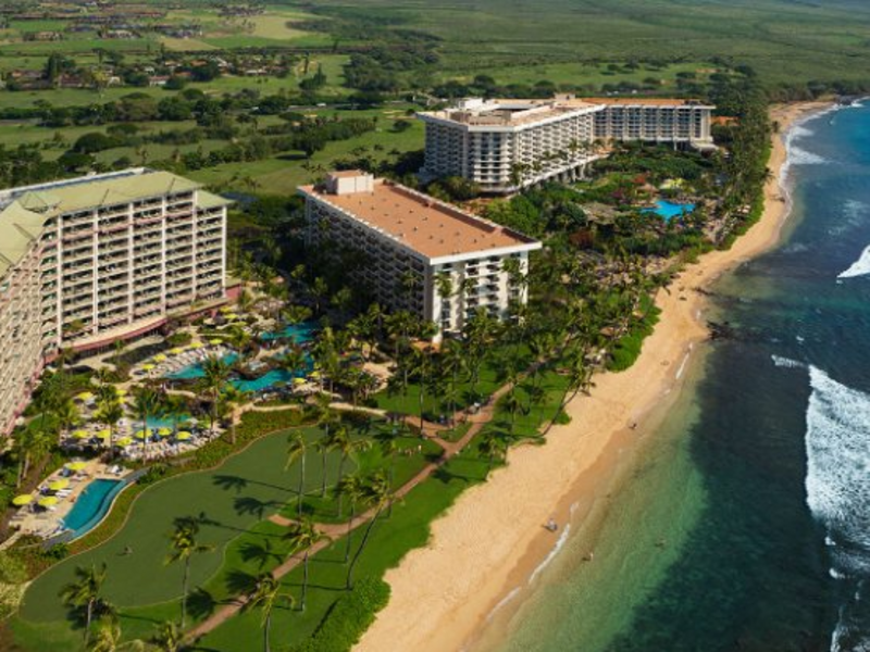 Die elegante und luxuriöse 4 Sterne Anlage ist von einem tropischen Garten umgeben und liegt direkt am Kaanapali Strand mit kristallklarem Wasser.