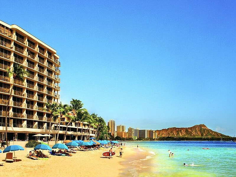 Das Outrigger Reef Waikiki Beach Resort liegt direkt am Strand von Waikiki und verfügt über 658 Gästezimmer.