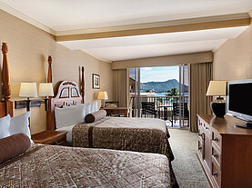 Die Hotelzimmer und Suiten befinden sich im Ocean Tower und im Pacific Tower, die durch schlichte Eleganz überzeugen. Die Zimmer verfügen entweder über einen Balkon mit atemberaubenden Ausblick auf die Stadt oder auf den Pazifischen Ozean und sind ausgestattet mit Klimaanlage, Kabel-TV, Kühlschrank, Kaffeemaschine und kostenfreiem WLAN. Verschiedene Zimmerkategorien mit unterschiedlichen Ausblicken werden angeboten.